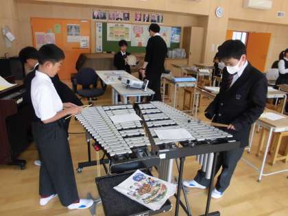 「リボンのおどり」の合奏に取り組んでいます。リコーダー・鍵盤ハーモニカ・木琴・鉄琴・小太鼓・タンバリン・バスマスター、それぞれのパートで分かれて練習をしました。その後、グループになって、重なり合う響きを味わいながら演奏しています。次の時間の発表会がとても楽しみです。