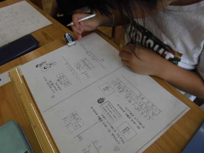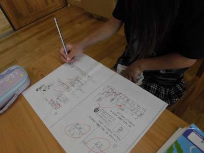 くり下がりの問題では、「10かりて・・・」と数字を書きかえながらていねいに計算していました。
