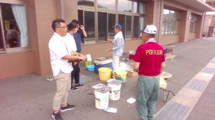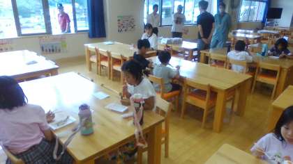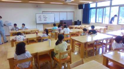 アユの食味体験をしました。子どもたちは、「塩味で美味しかった」などの感想を言っていました。
