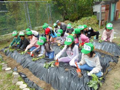 5月に、地域のサポート隊の方にお世話になって、サツマイモの苗を植えました。(写真1枚目)