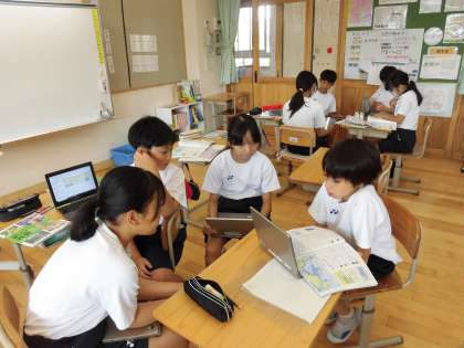 日本の水産業の課題について話し合いました。子どもたちは、資料から課題をしっかり読み取り、それぞれの課題に対して、解決策を考えている子もいました。タブレットを活用しながら、活発に話し合うことができました。
