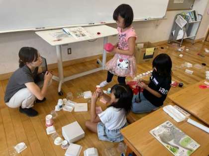 今日のふるさと未来科でも、パックや芯、空き箱などを使って遊びました。お友だちの考えた遊びで遊んでみたり、自分の考えた遊びを伝えたりしながら楽しく活動することが出来ました。