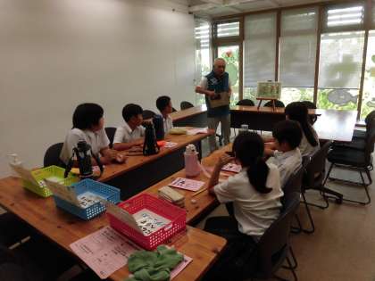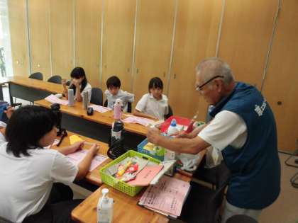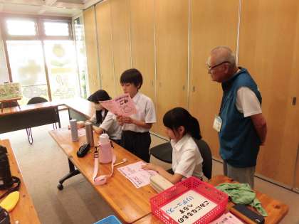 地球温暖化ふせぎ隊として、「ごみ」を学習するグループです。なぜごみを減らさなければいけないのかを考えました。そして、ごみにも色々な種類があることを知りました。最後には、ごみを減らすために自分ができることを一人一人発表していました。