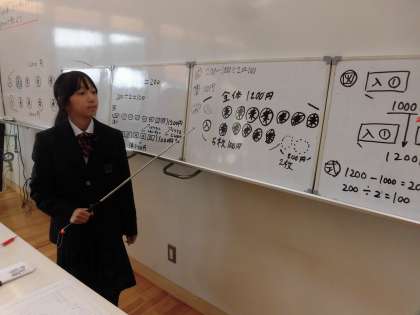 2つの買い方の同じものに目をつけて、差し引いたり置き換えたりして考える学習をしました。図にかくと、同じものが見つかりやすいことが分かり、子どもたちは、友だちと自分の考えをつないだり、自分の考えを広げて深めたりすることができました。
