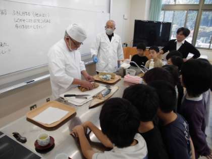 地域の方を講師にお招きし、鯖寿司についてお話を聞いた後、焼鯖寿司の食味体験をしました。