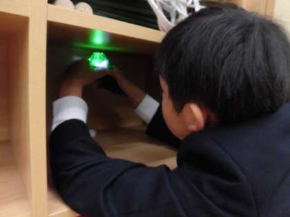 いろいろな材料に光を通して生まれる形や色をもとに、光が美しく見えるように表し方を工夫しました。教室の暗い場所で、光を当てて確かめながら、意欲的に活動に取り組んでいました。