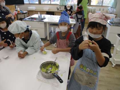 サポート隊の方々をお招きして、おいもパーティーを開催しました。朝から子どもたちはスイートポテト作りに励み、楽しみにしていた様子が伝わってきました。