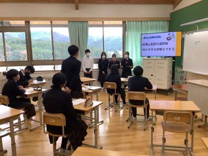 8年生は2学期のふるさと未来科を通して、京北に観光客を増やすためにと移住者を増やすためにの2つのテーマに分かれて、グループで改善策を考えてきました。