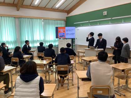 本日調べてきた内容を、7年生・9年生・地域の方々・教職員に向け発表をしました。