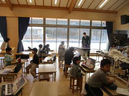 音楽の時間に「きらきら星」の曲を練習しました。指遣いに気を付けながら鍵盤ハーモニカで吹いたり、鉄琴に挑戦したりしました。子どもたちはとても楽しそうに取り組んでいました。
