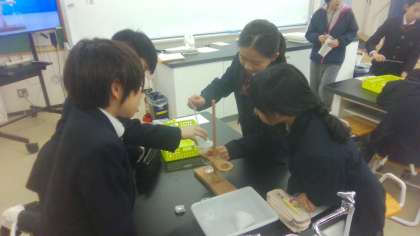 ろ過のしかたについて学習しました。ミョウバンの水溶液と食塩水をろ過して、見えているつぶを取り除きます。ろ過した液を氷水で冷やし、つぶが取り出せるかを調べました。子どもたちは、固体と液体に分かれていく様子に興味津々でした。