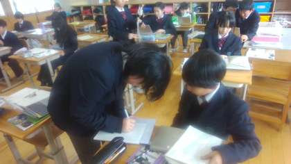 森林には、人工林と天然林があることを知り、それぞれの違いについて考えました。そこから自分たちで学習問題を作りました。子どもたちは、その問題を解決するための学習計画を立て、各自調べ学習を進めています。ペアトークの時間では、調べたことをしっかりと相手に伝えることができていました。