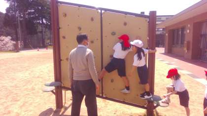 14日(月)に50m走を実施しました。まずは準備運動をして、スタートの練習をしました。その後、50m走のタイムを測定しました。ゴールまであきらめずに全力で走り切る子どもたちの姿が印象的でした。また、遊具の遊び方を確認し、三点支持を意識して行うことができました。