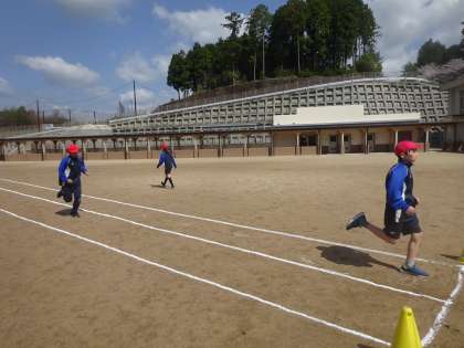 50m走をしました。「5年生のときより速くなったよ!」「最後まで全力で走り抜けたよ!」など、6年生になって成長した自分の力を実感して嬉しそうに話す姿が印象的でした。