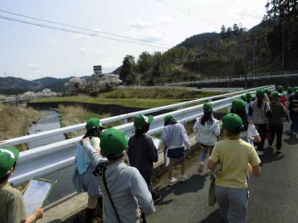 学校の周りにはどんな建物があるか、どんな土地の使われ方をしているのかなどを調べていきます。
