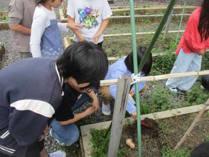 理科の学習で種まきをしました。今日はヘチマの種をまきました。「早く芽が出るかな?」「水はどのくらいやろうかな。」など話しながら、子どもたちはとても楽しそうに活動していました。