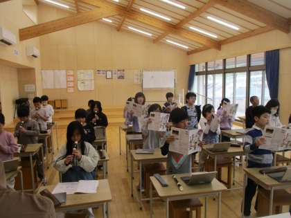 音楽の時間にリコーダーと歌声を合わせて演奏する活動をしました。互いの声や音を聴きながらどうすればきれいに響き合うかを考えました。