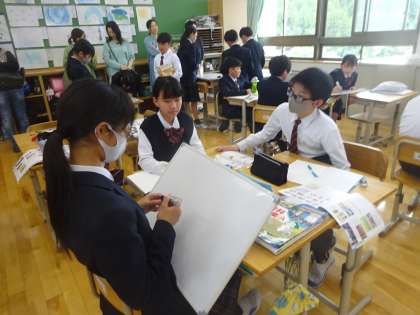 社会科「わたしたちのくらしと日本国憲法」の学習で、基本的人権について調べました。これまでの経験から人権についてのイメージを膨らませ、教科書や資料集をもとに個人、グループ、全体で考えをまとめました。この日は今年度初めての参観授業ということもあり、おうちの人たちの前で一生懸命学習する姿が印象的でした。