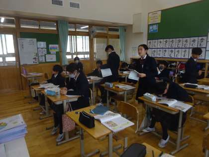 「男女の友情」について考えました。教科書で学んだことを自分たちのクラスに置き換えて、これからどうしていくのかについて考えることができました。身近な問題だけあって、最初はなかなか意見が出にくい時間がありましたが、よりよいクラスにしていくために勇気を出して発言しようとする姿が印象的でした。