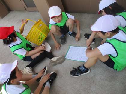 体育の学習ではリレーの学習もしています。リレーの学習も後半になり、バトンパスの仕方やコーナーの走り方など、チームごとに工夫をしながら活動しています。作戦会議では、リーダーを中心に次の試合に向けて意見を出し合っています。