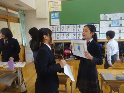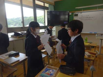 外国語科「This is me!」の学習で、自己紹介をしました。自分の好きなもの、得意なこと、宝物などを紹介し、お互いのことを尋ね合いました。