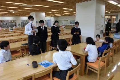 ネクタイ、ボタン、ブレザーなど、校則に従ってそれぞれの視点からまとめたことをお話してくれました。
