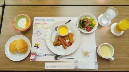 おはようございます。朝食を食べました。みんな元気です。今日は「長崎市内班別研修」と佐世保市で「クルージング」と「水族館見学」を行います。