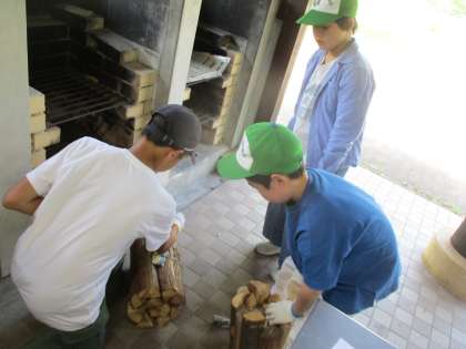 集いが終わったら、早速野外炊事の始まりです。これまで調べた内容を生かして、火をおこしたり、飯盒でご飯を炊いたりしました。