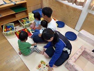 保育所の子たちとと目を合わるために、腰をかがめたり、手をつないで歩いたりしていました。