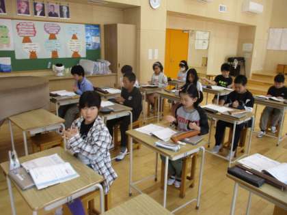 音楽の時間に2グループに分かれて、音楽に合わせて手をたたき、感じたことや気づいたことを発表しました。これまで学習した、「かけあい」にも気づき、リズム遊びを楽しんでいる子どもたちでした。