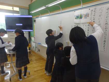 道徳科で「心づかいと思いやり」について考えました。「心は見えないけど、心づかいは見えるね。」「思いは見えないけど、思いやりは見えるよ。」「心づかいや思いやりは相手に表していったほうがいいね。」など、たくさん話し合う姿が見られました。
