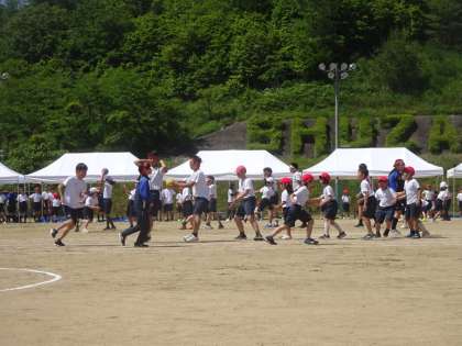 全校種目の1つの「ボール送り」です。みんな自分のところにボールが来るのに、ワクワク。送ったボールがどれだけ早く自分の後ろに届くか、ドキドキ。1〜9年生が力を合わせて、頑張っていました。