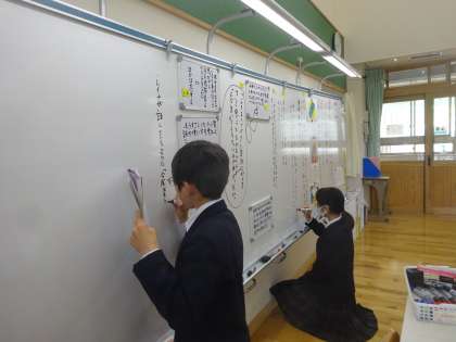 今回の道徳科では、「節度・節制」について学びました。今回は教科書で学んだことをもとに、自分たちが学級でどのように生かしていけるのか話し合う時間も設けました。