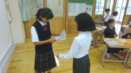 5年生の外国語活動では、Unit 2「Happy birthday!」の学習を通して、英語で誕生日をお祝いする表現を学びました。学習のまとめとして、自分だけの「プレゼントカード」を作り、友だちに英語で渡す活動を行いました。カードには「Happy Birthday!」のメッセージと思い思いのイラストを描きながら、英語で気持ちを伝える楽しさを実感していました。カードを受け取った友だちも笑顔いっぱいで、「Thank you!」と英語でお礼を伝える姿が見られました。英語を使って気持ちを伝え合うことで、言葉の力やコミュニケーションの大切さを学ぶ、心温まる時間となりました。