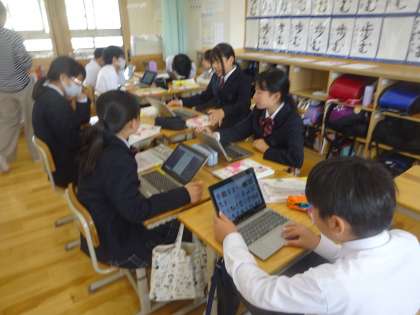 国語科の学習で、インタビューをして集めた情報をグループでまとめました。まとめた情報をもとに、6年生はある活動を計画をしています。この後どのような形になるのか楽しみです。