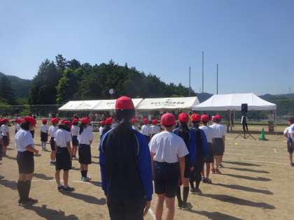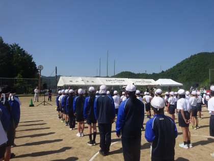 6月5日の体育祭の様子です。開会式では前期課程最高学年として胸を張って整列する姿が印象的でした。また、準備体操では6年生の生徒が全校生徒の前に立ち、お手本を披露しました。