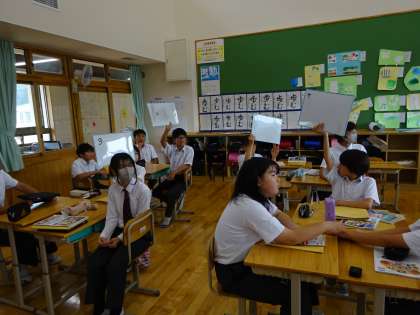 外国語科では、2学期から新しく赴任されたALTの先生との出会いがありました。先生の自己紹介を交えながら、楽しく交流することができました。