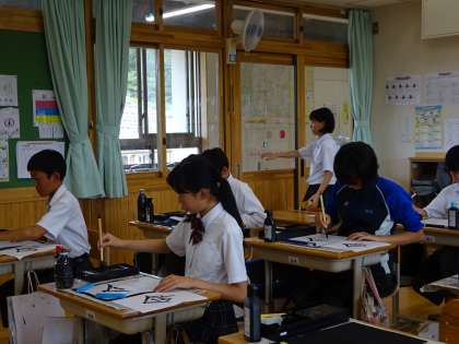 点や線に気を付けて、心を落ち着かせて字を書きました。クラス全体で字を書くための雰囲気作りができました。
