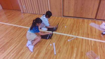 今回は体育館で、どんな遊びができるか、やってみました。子どもたちは遊びながら、どうすればもっと工夫できるかを話し合っている様子も見られました。まだまだ工夫できるところがありそうで、今後が楽しみです。