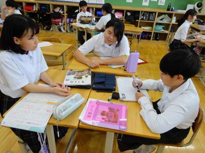道徳科の学習で、「おかげさま」という言葉が持つ力について考えました。「感謝を伝えるあたたかい言葉だと思うよ。」「何に対してもおかげさまと思えることはとても素晴らしいことだね。」など、「おかげさま」という言葉を通じて友だちと交流し、たくさん考えることができました。