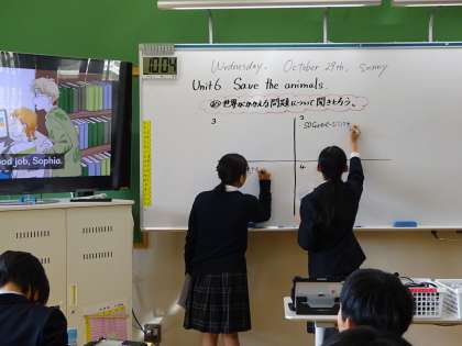 外国語「Unit6」の学習が始まっています。今日は世界が抱える問題について、教科書の音声を聞いて聞き取れたことをメモしました。1回では聞き取れなかったことでも、2回、3回と聞けばわかってきたり、友だちと相談してみたり、聞き取れた単語と単語をつなげてイメージしてみたりしながら、音声を聞き取ることができました。