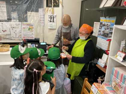 21日の5・6時間目に、まちたんけんに行きました。今回は、『京北交番』『Sachiのパン屋』『亀屋廣清』です。インタビューをして、「知らなかったことがわかった!」「お店の工夫ってすごい!」など、たくさんの発見があったことに大喜びの子どもたちでした。この活動を通して、地域の方とふれあいながら、まちのよさや働く人の思いに気づくことができました。