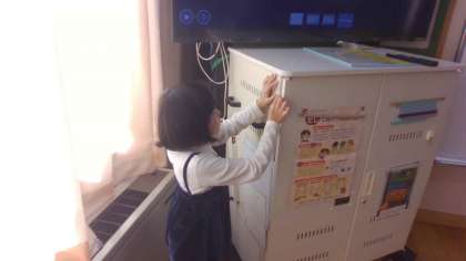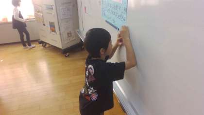 三角定規は、1つの角が直角であることを学習しました。最後に、三角定規を使って、身の回りから直角の形を見つけました。子どもたちは、色々なところに直角があることに驚いている様子でした。