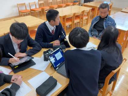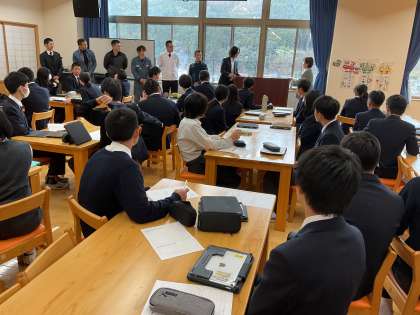 現在8年生は、京北ふるさと未来科の取組の一環として『京北の発展』についてグループごとに分かれ、新たな取組や事業を考えるという活動を行っています。本日は京北商工会青年部の方々が講師として来て下さり、色々な視点からお話をしてくださりました。いつもとは違う顔つきで一生懸命質問をしたり、話を聞いたりする姿が見られました。