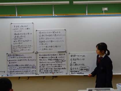 京北ふるさと未来科「京北の福祉」で、自分たちにできることをさらに具体化して、クラス内で提案をし合いました。どのグループも京北の未来を真剣に考えていて、一生懸命提案する姿が印象的でした。