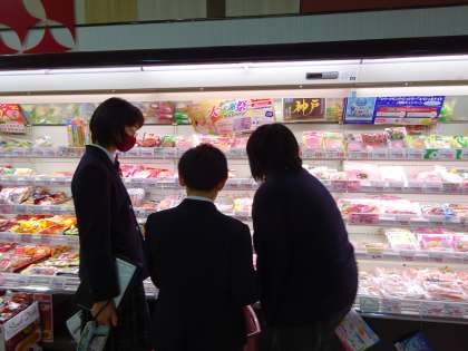 家庭科「まかせてね今日の食事」の学習で、自分たちで計画を立てて、調理実習を行います。今日はグループで考えた計画をもとに、スーパーで買い物をしました。食品の表示や分量に気を付けて、グループで協力しながら買うことができました。