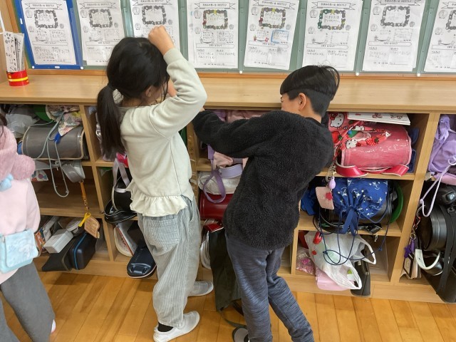 子どもたちが実際に体を使って、1mの長さを感じる学習をしました。「1mってどれぐらいかな?」と聞くと、「これくらい!」「ちょっと長い?」「身長より短い?」といろいろな声があがりました。そこで、教室の中で身近なものを使って調べてみると、生活の中には1mに近いものがたくさんあることに気づきました。100㎝ものさしを使って、「ここの高さはどう?」「これ100㎝に近そう!」など、友達と協力しながら楽しく取り組む様子が印象的でした。
