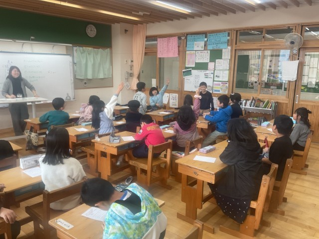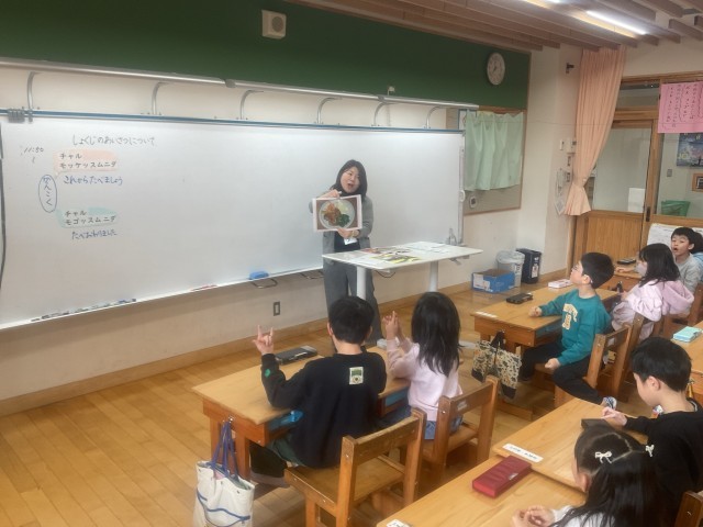今月のなかよしの日は、食育の学習で「いただきます。」「ごちそうさまでした。」の意味について考えました。普段、何気なく口にしているあいさつですが、その言葉の中には多くの思いが込められていることを知り、子どもたちは目を輝かせて学んでいました。また、給食調理員さんに向けて、好きな給食クイズを考えました。最後は、子どもたち同士でクイズを出し合い、楽しみながら学習をしていました。