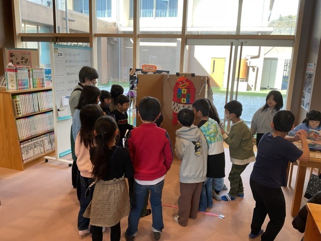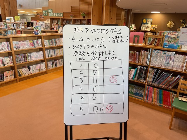 メディアセンターで「おにをやっつけろゲーム(ストラックアウト)」に挑戦しました。ボールを投げて、的をねらうゲームです。子どもたちは「ねらいを定める」「力加減を考える」ことを意識しながら、友達と協力して楽しく活動していました。とても盛り上がり、笑顔いっぱいの時間になりました。