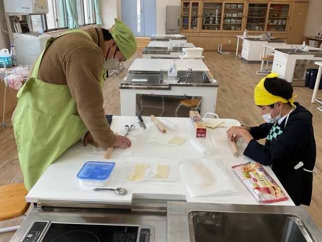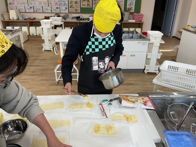 後期課程3組で調理実習があり、「アップルパイ」を作りました!